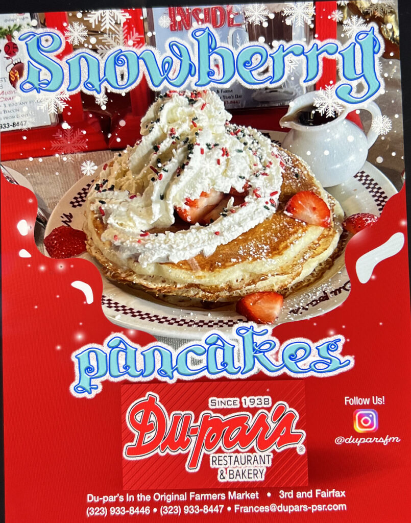 Our quality meats, fresh vegetables and fruits, and pies and pastries are all prepared, by hand, fresh daily. Since Du-par’s Restaurant and Bakery first opened at Farmer’s Market in 1938, generations have enjoyed our fare. Indeed, our Du-par’s hotcakes have now become famous. We continue to prepare them 24 hours a day!