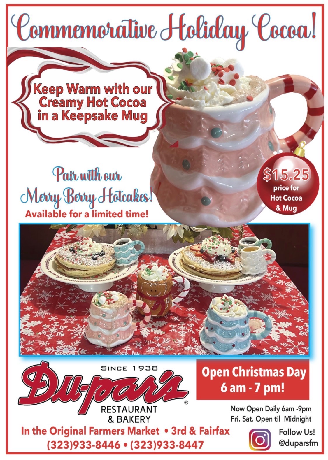 Our menu today retains many of the dishes that made Du-par’s popular for so many generations. I’m pleased to know our guests can always enjoy a return trip to Du-par’s to share another plate of ‘hotcakes’ or some other favorite dish and relive fond memories with their friends and family.